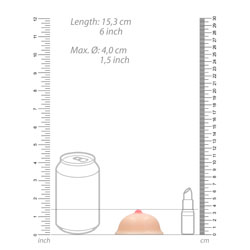 The S-Line Titty Soap has a diameter of 7.3cm, 2.9 inches, and a height of 4.4cm, 1.7 inches including the lifelike nipple.
